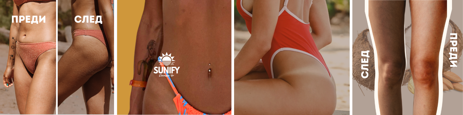 Уникалната формула на SUNIFY с 5 натурални съставки ви позволява да добиете бърз и здравословен тен, постигайки видима разлика още след първия ден под слънцето!