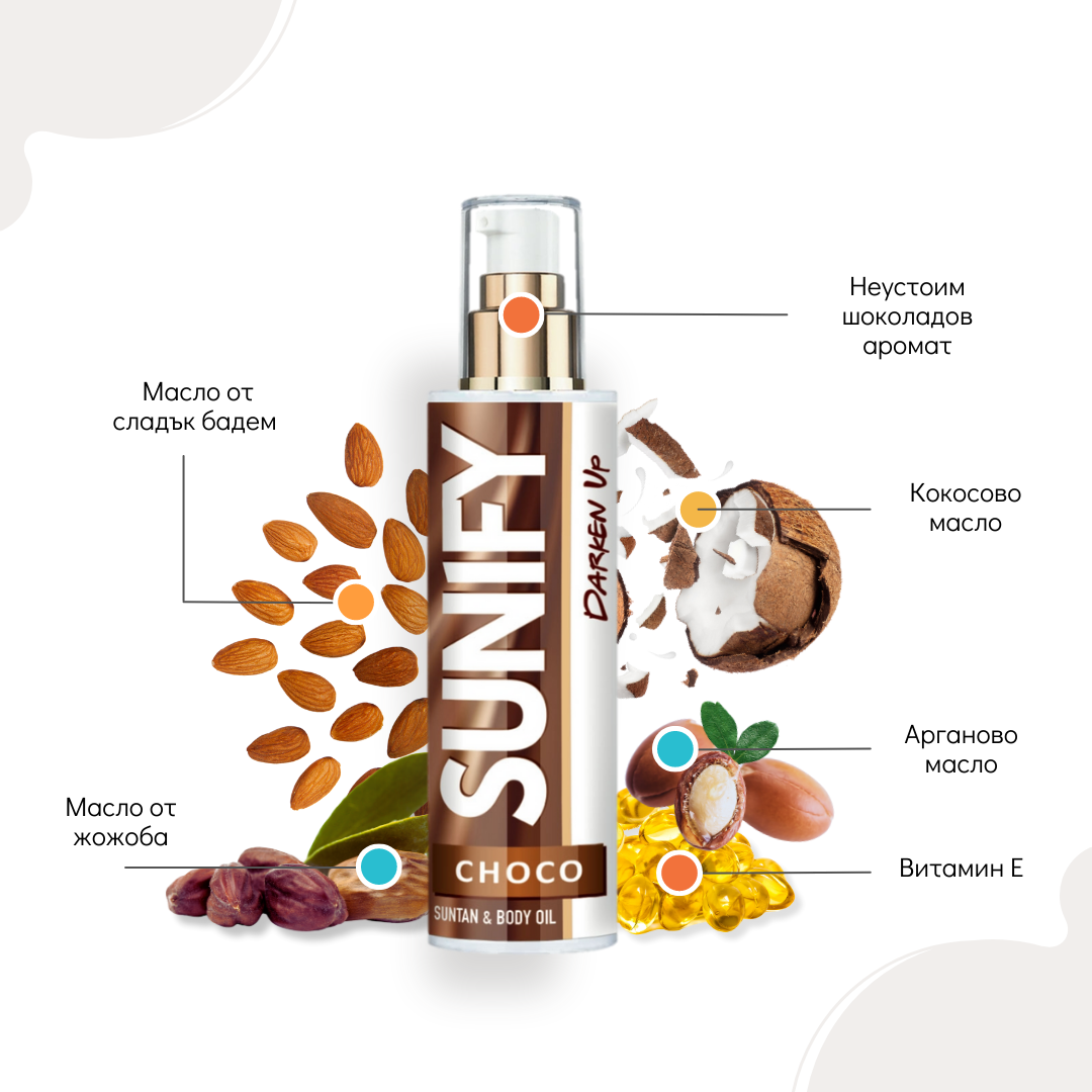 SUNIFY CHOCO натурално масло за тен за тяло и лице 200ml
